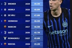 1、巴斯托尼(国米):1020万欧元