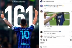 161球并列队史射手榜第4!劳塔罗社媒转发数据并晒庆祝照纪念