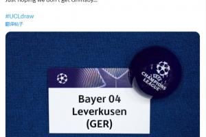 勒沃库森社媒调侃:“希望我们不要抽到格林斯比。”