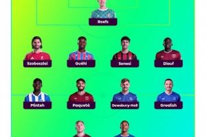 后卫:索博斯洛伊(利物浦)、格伊(水晶宫)、塞内西(伯恩茅斯)、迪乌夫(西汉姆)